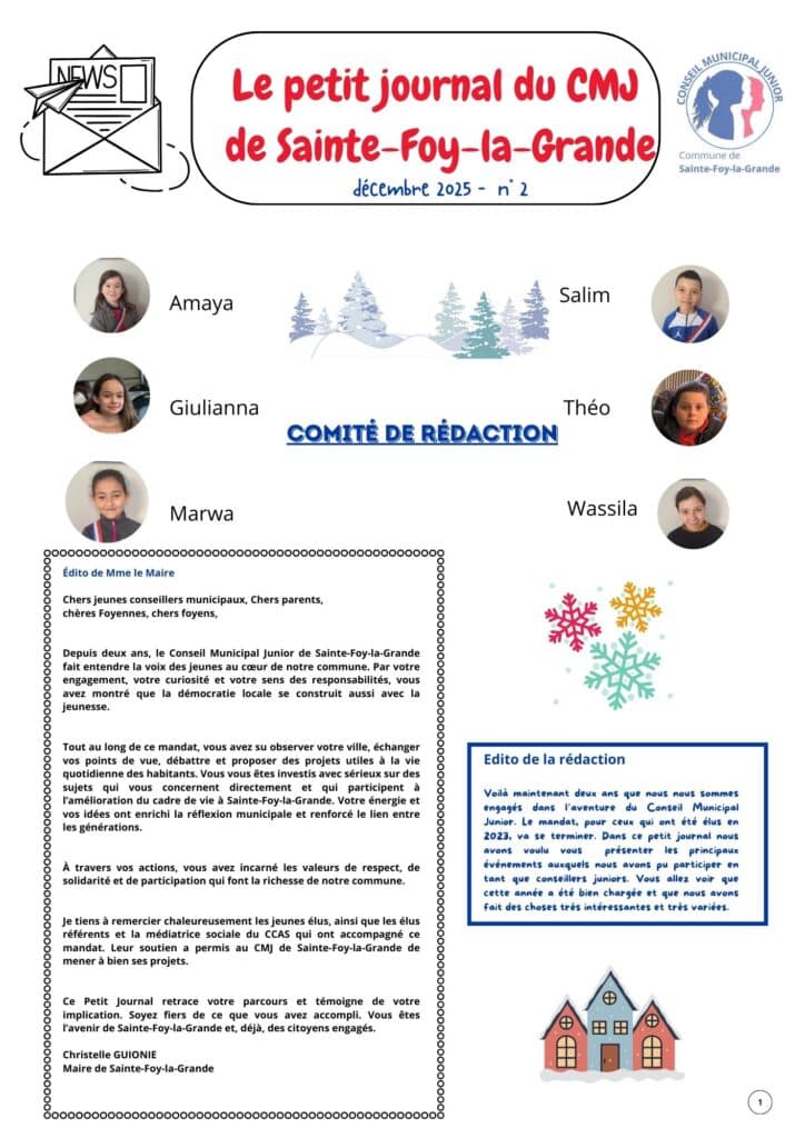 Tout jeune habitant Sainte-Foy-la-Grande et scolarisé en CM1 et CM2 dans un établissement scolaire de Sainte-Foy-la-Grande et en 6ème au collège Élie Faure.